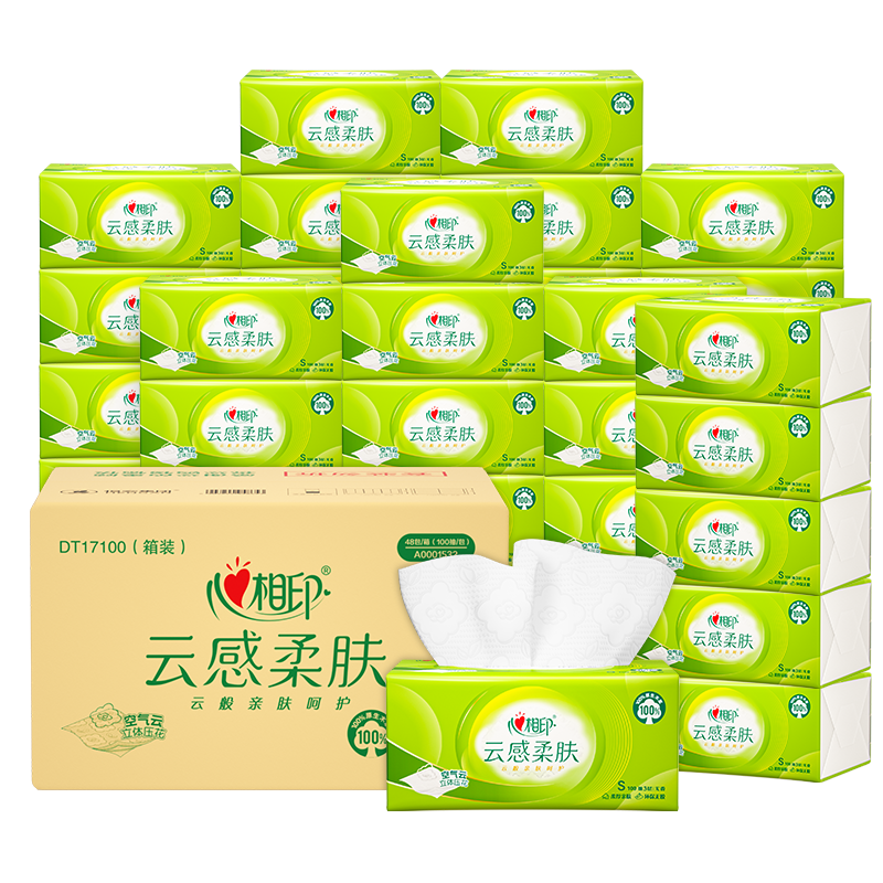 心相印【田栩宁推荐】抽纸 云感柔肤 3层100抽*48包S码 纸巾面巾纸整箱