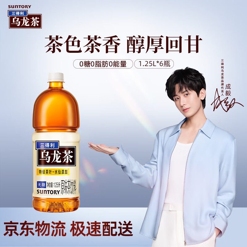 三得利 【代言人成毅同款】无糖乌龙茶饮料 0糖0脂0能量 1.25L*6瓶